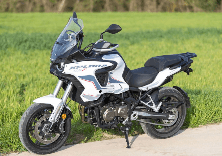 Un modelo que merece mucho la pena destacar es la Xplora 707, una Trail made in Spain, con un precio digno de las motos chinas. Es una versión muy todoterreno, con una estética realmente deportiva, que se basa en un chasis tubular de acero, y que monta unas llantas de radios de 19” y 17”, así como un escape lateral prominente y una firma lumínica LED con semicircunferencias, que le da una identidad propia, y te entra por los ojos muy rápido.