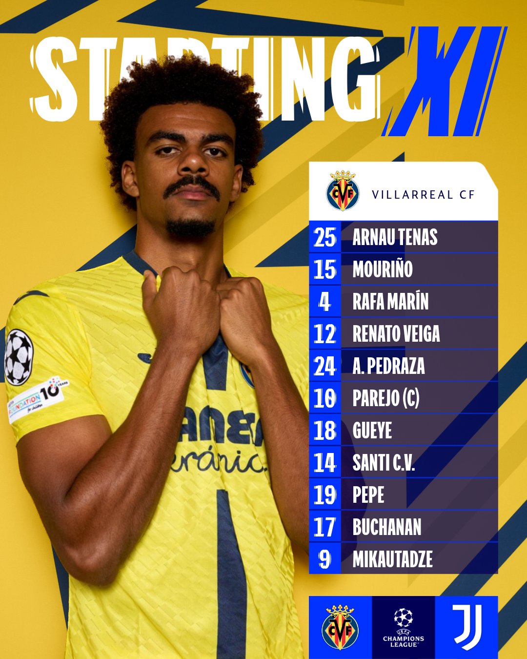 Ciao, ragazzi! 👋🏻 ⚪️⚫️#VillarrealJuve #UCL pic.twitter.com/EURbKfj0uQ