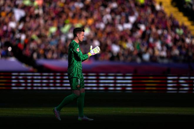 En DAZN, el portero alemán celebró el poder levantar LALIGA EA Sports contra el Villarreal después de haberse lesionado contra los amarillos en el duelo en la primera vuelta: "Significa mucho para mí esto: volver a disfrutar como nunca. Llevo algunos títulos con este club pero ahora valoro más las cosas que cuando juegas cada tres días. De vez en cuando se cierran los círculos y feliz de estar en el campo levantando un título. Por la forma cómo lo hicimos es para estar orgulloso como culé".
