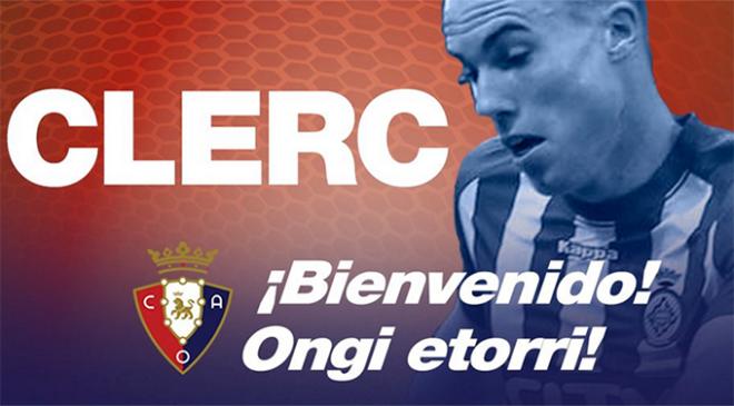 Clerc es el séptimo refuerzo de Osasuna para la próxima temporada tras los fichajes de Oriol Riera (Deportivo), Fran Mérida (Huesca), Jaime Romero (Zaragoza), Fausto Tienza (Alcorcón), Juan Fuentes (Espanyol) y del serbio Goran Causic (Eskisehirspor Kulubu turco).