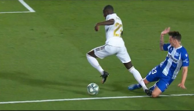 El español Ximo Navarro tuvo que marcharse del terreno de juego en el minuto 23 del partido entre Real Madrid y Deportivo Alavés con evidentes síntomas de dolor en su pie derecho tras una lucha por el balón con el brasileño Rodrygo Goes.