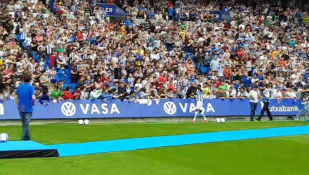 El futbolista sueco de 20 años fue el primero en saltar al césped de Anoeta. Con su 1,90 metros se subió al podio que estaba instalado frente a la Grada Aitor Zabaleta, y saludó a su nueva afición. Se mostró como un jugador ambicioso y con ganas de completar una gran temporada con la Real. Aunque no se marca una cifra concreta de goles, sí aspira a ser parte activa en la consecución de "alegrías" para la familia txuri urdin.