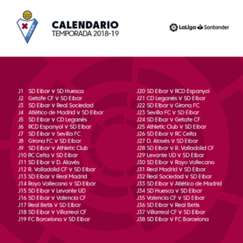 Aquí puedes consultar el calendario completo del Eibar en la temporada 18/19.